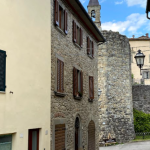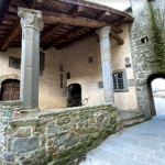 Una volta arrivati al borgo, iniziamo a salire costeggiando la Torre di Ronda: da qui potete decidere se proseguire a destra verso la chiesa o se proseguire un po’ avanti per salire e raggiungere una piazzetta, dove vi troverete davanti il Palazzo del Podestà e la loggetta. Il Palazzo, del XV secolo, si trova accanto alla chiesa e al campanile (sulla torre campanaria è ricavata una piccola porta che ci conduce ad una piazza più grande sulla quale si affaccia la chiesa).