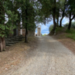 Dopo aver attraversato un delizioso vialetto di cipressi si nota subito un bello spazio verde che circonda tutto il perimetro murario dell’edificio.