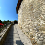 Lungo la passeggiata arriviamo alla parte alta del borgo ove svetta il bel castello, un tempo totalmente racchiuso dalla propria cinta muraria difensiva, e il suo massiccio cassero (già torre di guardia e di controllo).