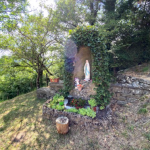 Nel bel giardino antistante la chiesa, oltre ad ammirare un bel panorama sulla vallata e trovare un momento di tranquillità e di fresco (soprattutto nei mesi estivi), è presente un angolo contemplativo in cui poter ritrovare e rasserenare il proprio spirito.