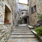 Varchiamo l’arco e accediamo al cuore del borgo storico: le varie case di origine medievale sono ubicate lungo il regolare sviluppo delle varie viuzze e stradine.
